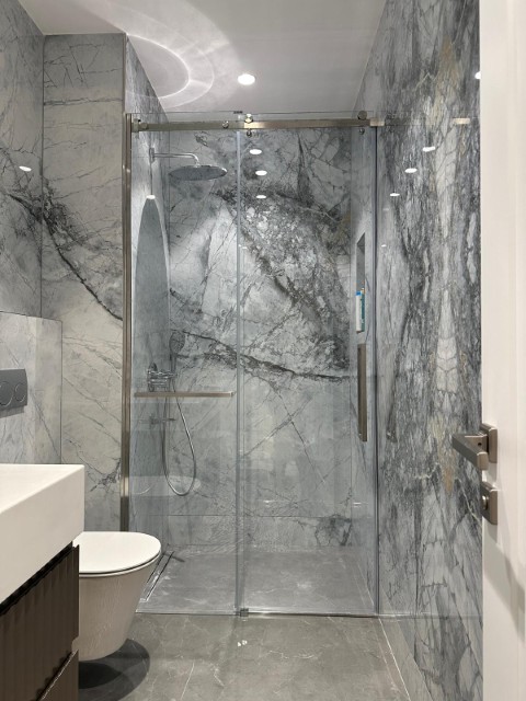 8mm temperlenmiş güvenlik camından imal edilmiş 304 çelik profilden tasarlanmış bu sessiz ve yumuşak kayar duş kabin sistemi duvar da cam tutucular kullanarak duvar kesitliği ortadan kaldıran banyolarda zengin bir duruş sergileyen bu ürün kalitede ödün vermeyen bu sistem sizlerin güven ile tercih etmenizi sağlıyor.