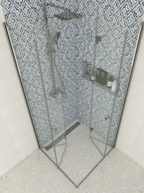 Kare İki Katlanır Kapılı Menteşeli Duş Kabini