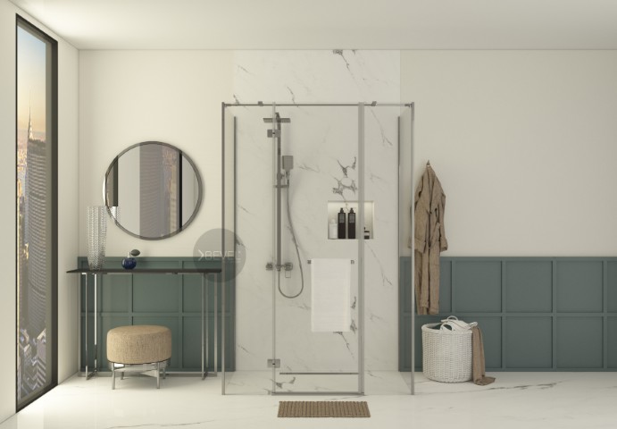 Dikdörtgen Dört Sabit Bir Açılır Menteşeli DuşKabin Sistemi