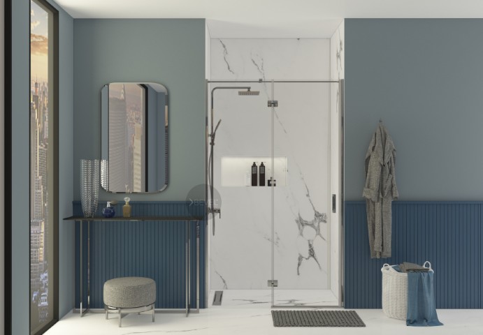 İki Duvar Arası Bir Sabit Bir Açılır Menteşeli Duş Kabini