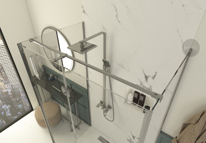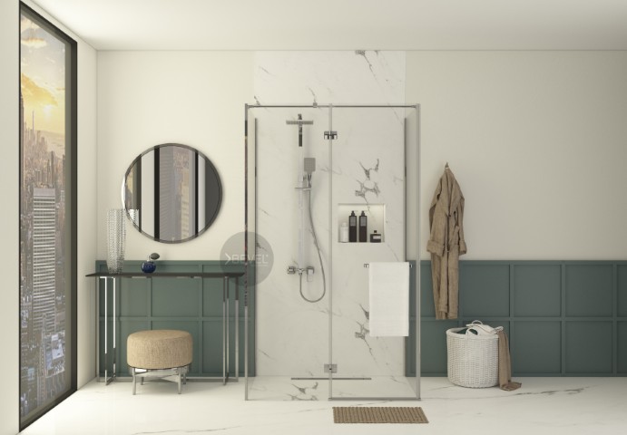 Dikdörtgen Üç Sabit Bir Açılır Menteşeli DuşKabin Sistemi