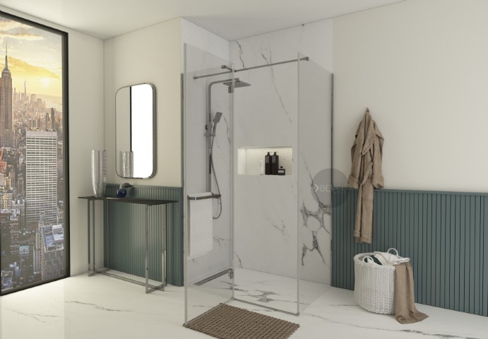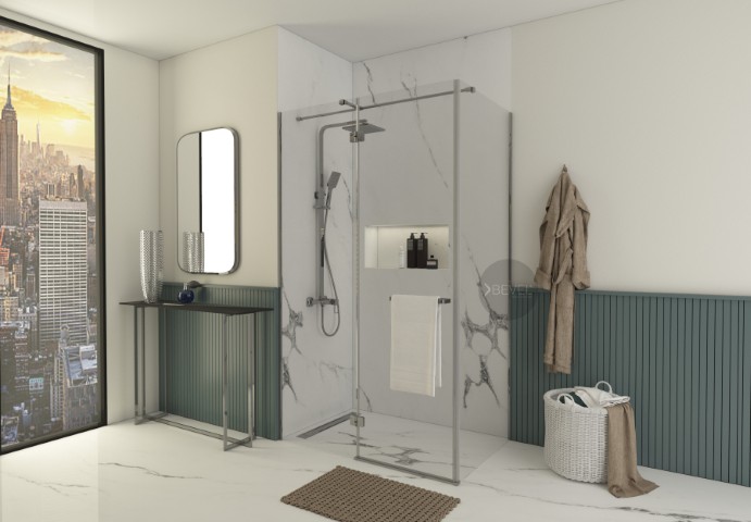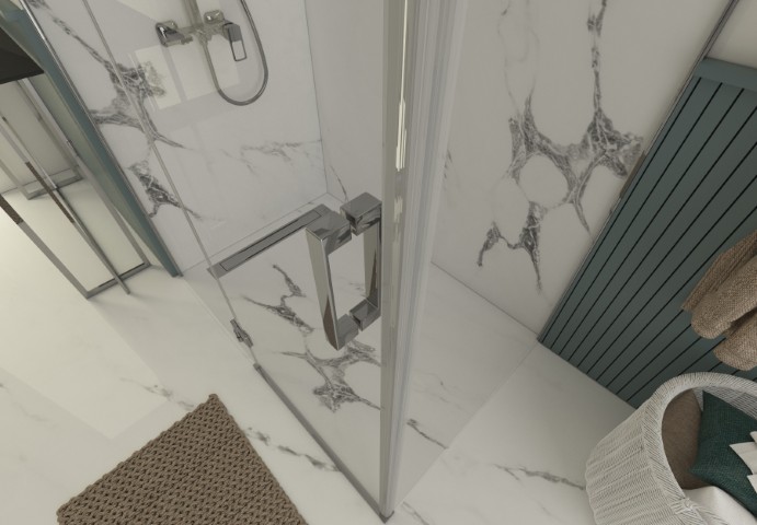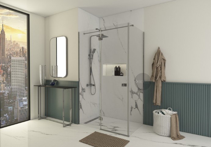 Dikdörtgen İki Sabit Bir Açılır Menteşeli Duş Kabini