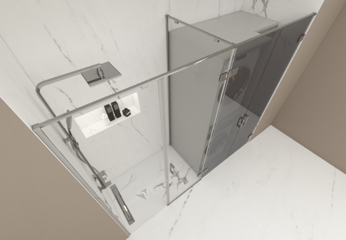 Dikdörtgen L Panelli İki Dolap Kapaklı Duş Kabini