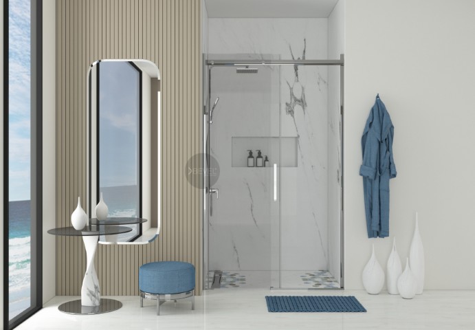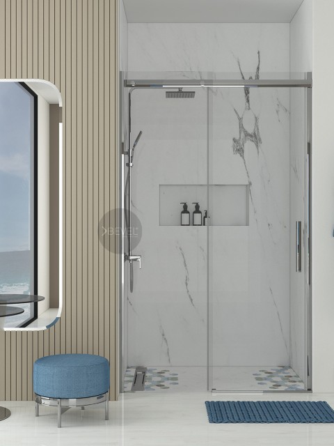 Düz Duvar Bir Sabit Bir Kayar Duş Kabini Sistemi