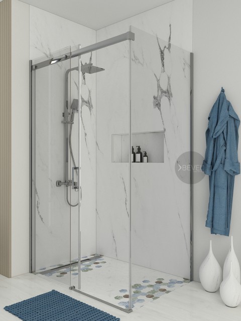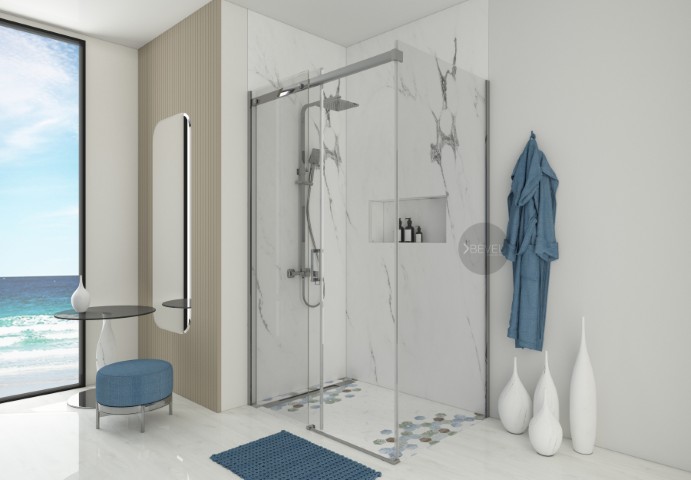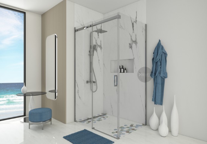 Dikdörtgen İki Sbit Bir Kayar Duş Kabin Sİstemi