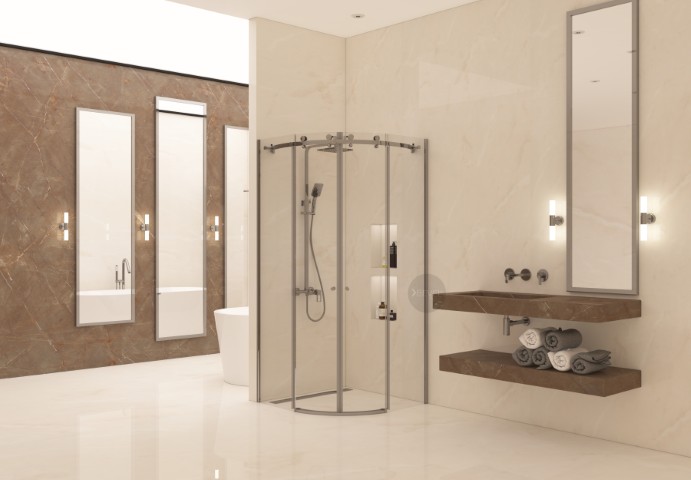 Vernum, oval tarzı ile banyonuzda daha güvenli ve üstün malzeme kalitesini kullanılarak rahat bir duş almanız için tasarlanmıştır. İki sabit iki kayar oval şeklinde özel ölçülerde uygulanabilen sürgülü bir sistem çağdaş tasarımıyla zahmetli ve zorlu süreçten geçerek kalitesinden ödün vermeyen çok şık bir görünüm kazanıyor.2000mm'lik yüksekliği, uzun boylu insanlar için bile rahat ve kullanışlı bir duş sağlar. 6mm ve 8mm'lik temperli camdan yapılmıştır. Camın yüzeyindeki kaplama sayesinde camın üzerinde kireç su damlası tutmaz. Bu temizlik ve bakımı çok kolaylaştırır. Camın kalınlığı ve tekerlek aksamı sayesinde sessiz ve yumuşak çalışan kapı sistemi vardır. Sürgülü kapı manyetik olarak kapanır. Kolay erişim için 50cm ray makaralı tekerlekler ve zarif kapı kolu krom kaplı paslanmaz pirinçten imal edilmiştir Alüminyum duvar profilleri göze çarpmayan ve 20 mm'ye kadar duvar dengesizliğini telafi edebiliyor.