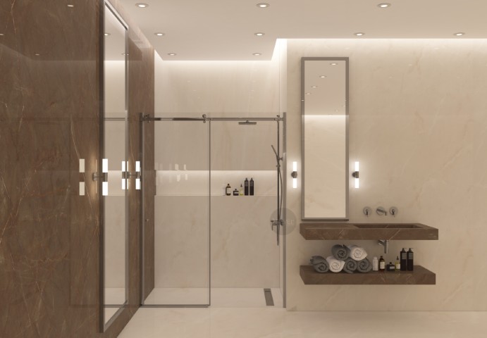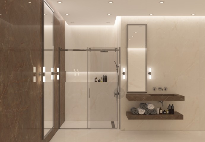 İki Duvar Arası Bir Sabit Bir Kayar Duş Kabin Sistemi