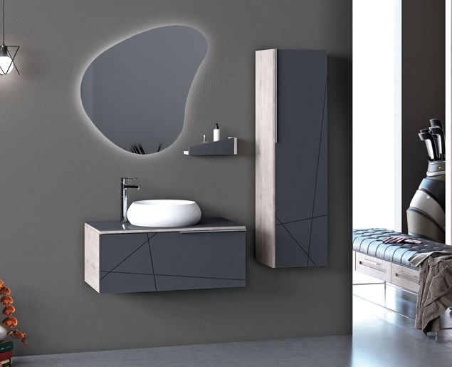 | Seramik lavabo, cam tezgah Ledli ayna |