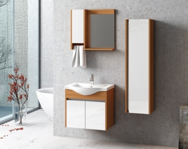 Seramik lavabo ve dolaplı ayna