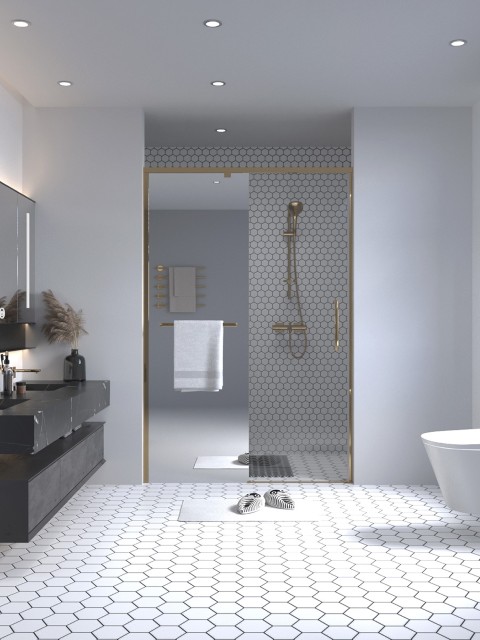 Düz Duvar Bir Sabit Bir Kayar Duş Kabini Sistemi