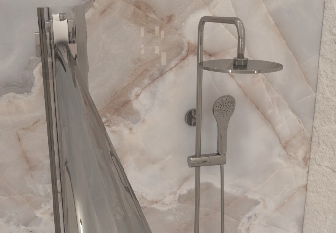 Nova, kendine özgün bir tasarımdır. Birçok şekilde banyonuzda uygulanabilen sürgülü bir sistem çağdaş tasarımıyla kullanılan tüm malzeme kalitesiyle kendini en üst seviyelerde tutan bu ürünün değerli bir malzemeden olmasıdır. Nova,çok şık bir görünüm sağlıyor. 2000mm'lik yüksekliği, uzun boylu insanlar için bile rahat ve kullanışlı bir duş sağlar ve ayrıca yüksekliği isteğe bağlı olarak arttırılabilir. 8mm temperli camdan yapılmıştır. Bu kabinin temizliği ve bakımı sizi yormayacak derecede kolaydır. Camın kalınlığı ve tekerlek aksamı sayesinde sessiz ve yumuşak çalışan kapı sistemi vardır. Sürgülü kapı manyetik olarak kapanır. Kolay erişim için, makaralı tekerlekler ve zarif kapı kolu krom kaplı paslanmaz çelikten imal edilmiştir. 304 paslanmaz duvar profilleri göze çarpmayan ve 10 mm'ye kadar duvar dengesizliğini telafi edebiliyor. Kullanılabilir alana bağlı olarak, sağ veya sol kapı açılarını montaj esnasında tercih edebilirsiniz.