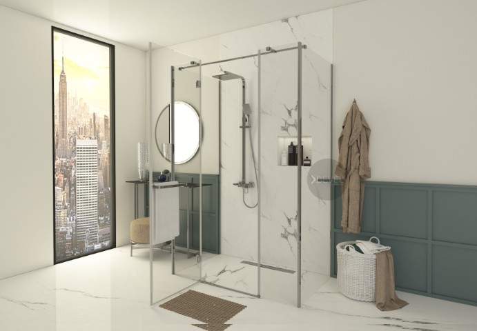 Dikdörtgen Dört Sabit Bir Açılır Menteşeli DuşKabin Sistemi