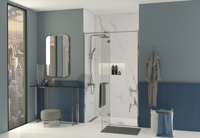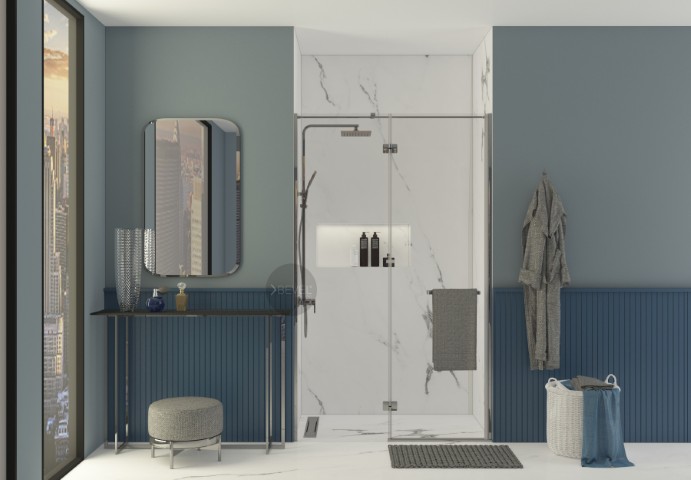 İki Duvar Arası Bir Sabit Bir Açılır Menteşeli Duş Kabini