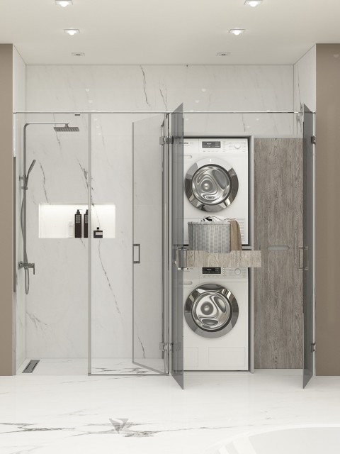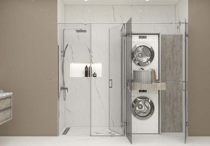 Dikdörtgen L Panelli İki Dolap Kapaklı Duş Kabini