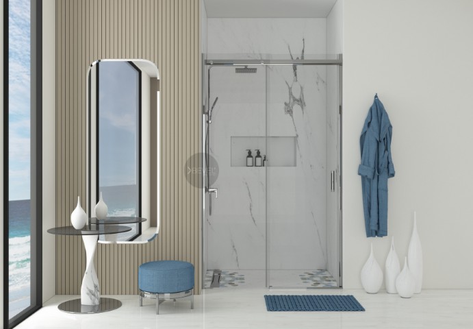Düz Duvar Bir Sabit Bir Kayar Duş Kabini Sistemi