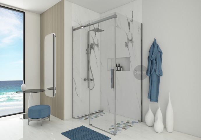 Dikdörtgen İki Sbit Bir Kayar Duş Kabin Sİstemi