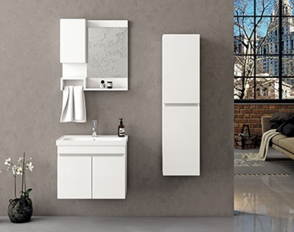 Seramik lavabo ve dolaplı ayna