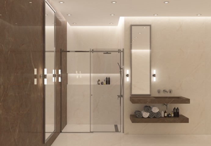 İki Duvar Arası Bir Sabit Bir Kayar Duş Kabin Sistemi